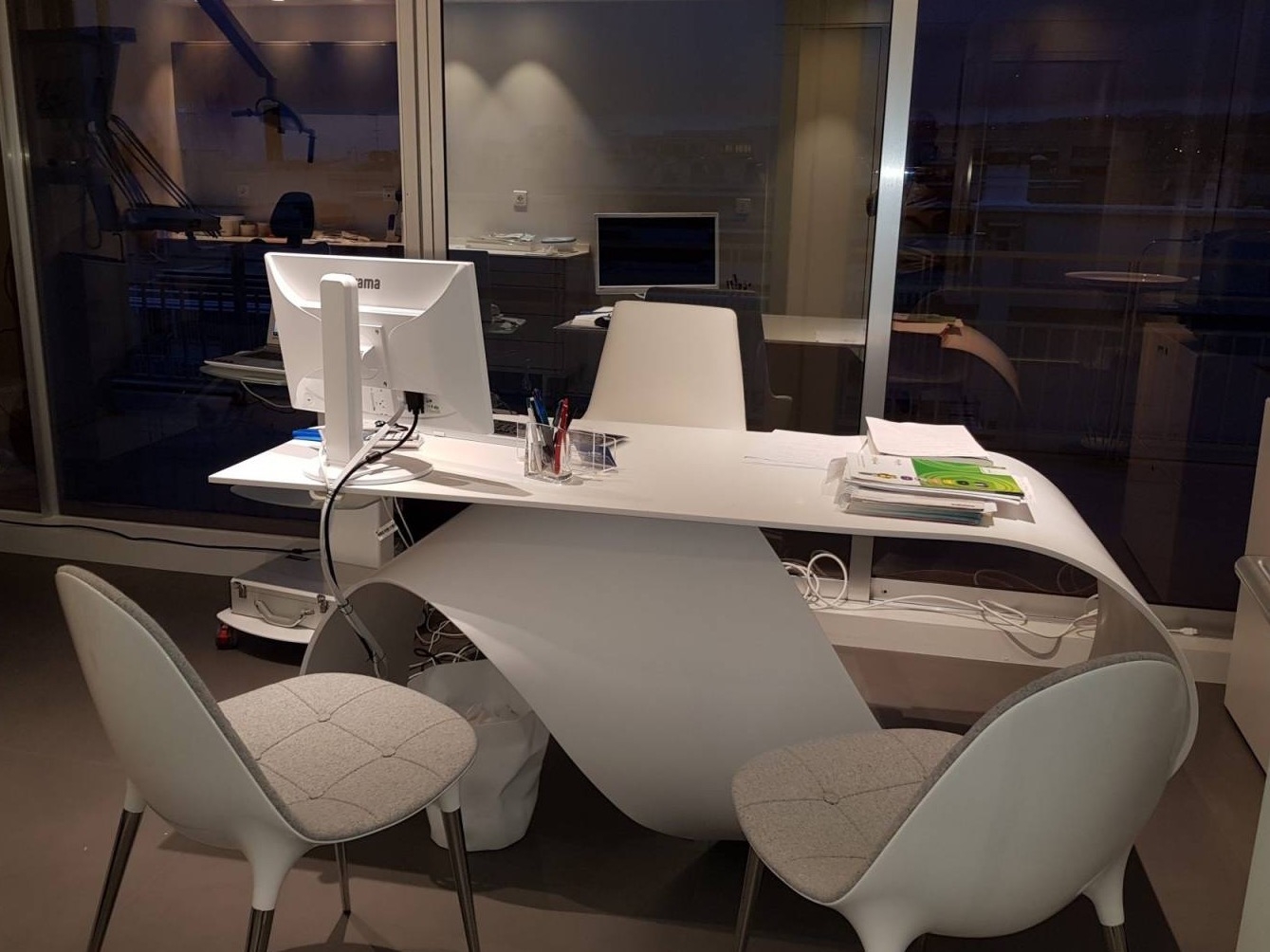 Un bureau indépendant a été pensé pour offrir un espace tranquille au praticien pour les tâches administratives et la gestion quotidienne. L’ensemble des aménagements respecte les standards ergonomiques, garantissant des flux de travail fluides et une expérience utilisateur optimale.