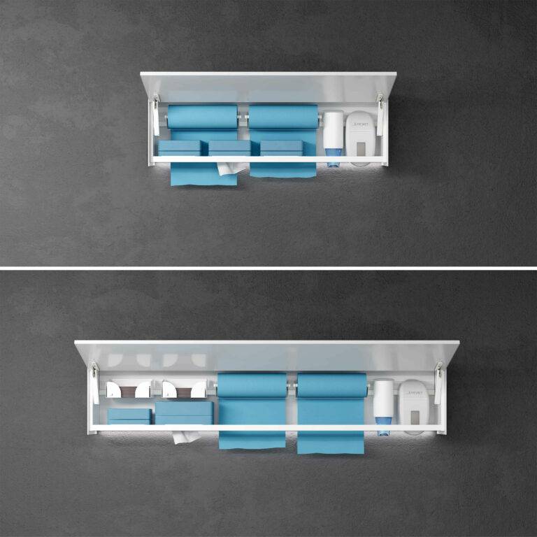 ALA LEAN, à la fois léger et incroyablement pratique, est une armoire suspendue moderne aux lignes épurées, qui s'intègre aisément à tout type d'aménagement de cabinet dentaire.