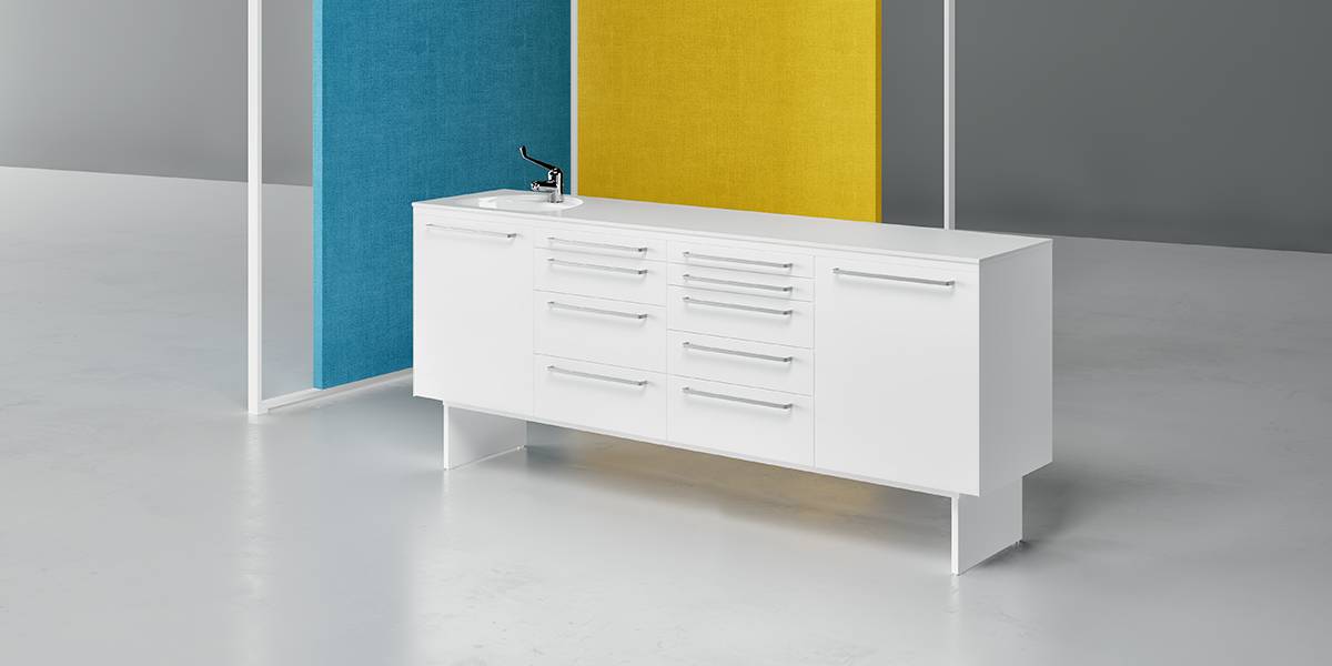 LIKE est un meuble qui mise sur l'essentiel comme principal atout. Disponible avec une base fermée ou sur pieds, il est modulable et conçu pour répondre efficacement aux besoins de votre cabinet dentaire.